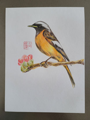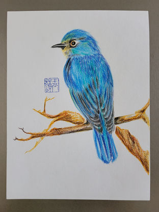 看見鳥跟看見花和看見樹一樣, 能把我飛遠的腦袋拉回當下跟眼前的景物重新連結。紀念這一刻的感覺而創作的「一鳥」木顏色彩繪作品。